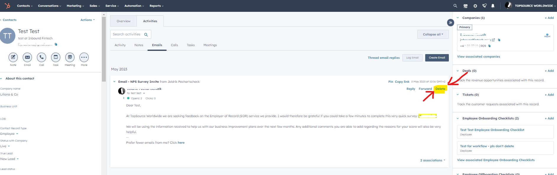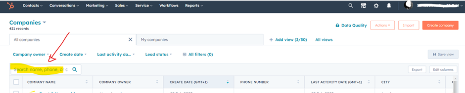 5. If the contact is associated with a company, the email is likely also recorded on the Company record